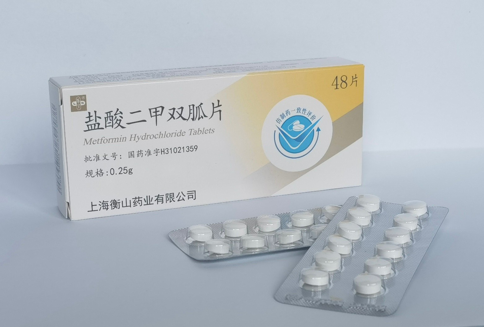 適應(yīng)癥:降低血糖,主要用于單純飲食及體育鍛煉控制血糖無(wú)效的2型糖尿病規(guī)格:0.25g包裝規(guī)格:48片/盒備注:醫(yī)保甲類(lèi)批準(zhǔn)文號(hào):國(guó)藥準(zhǔn)字H31021359產(chǎn)品名稱(chēng):鹽酸二甲雙胍片英文名稱(chēng):Metformin Hydrochloride Tablets